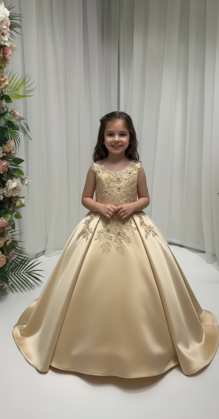 This stunning gown is crafted from luxurious, high-quality satin for a smooth, elegant finish that shines with every step. Designed with an inner hoop skirt (ring) to create a beautifully full, puffed-out silhouette, it offers a classic princess look with modern grace.