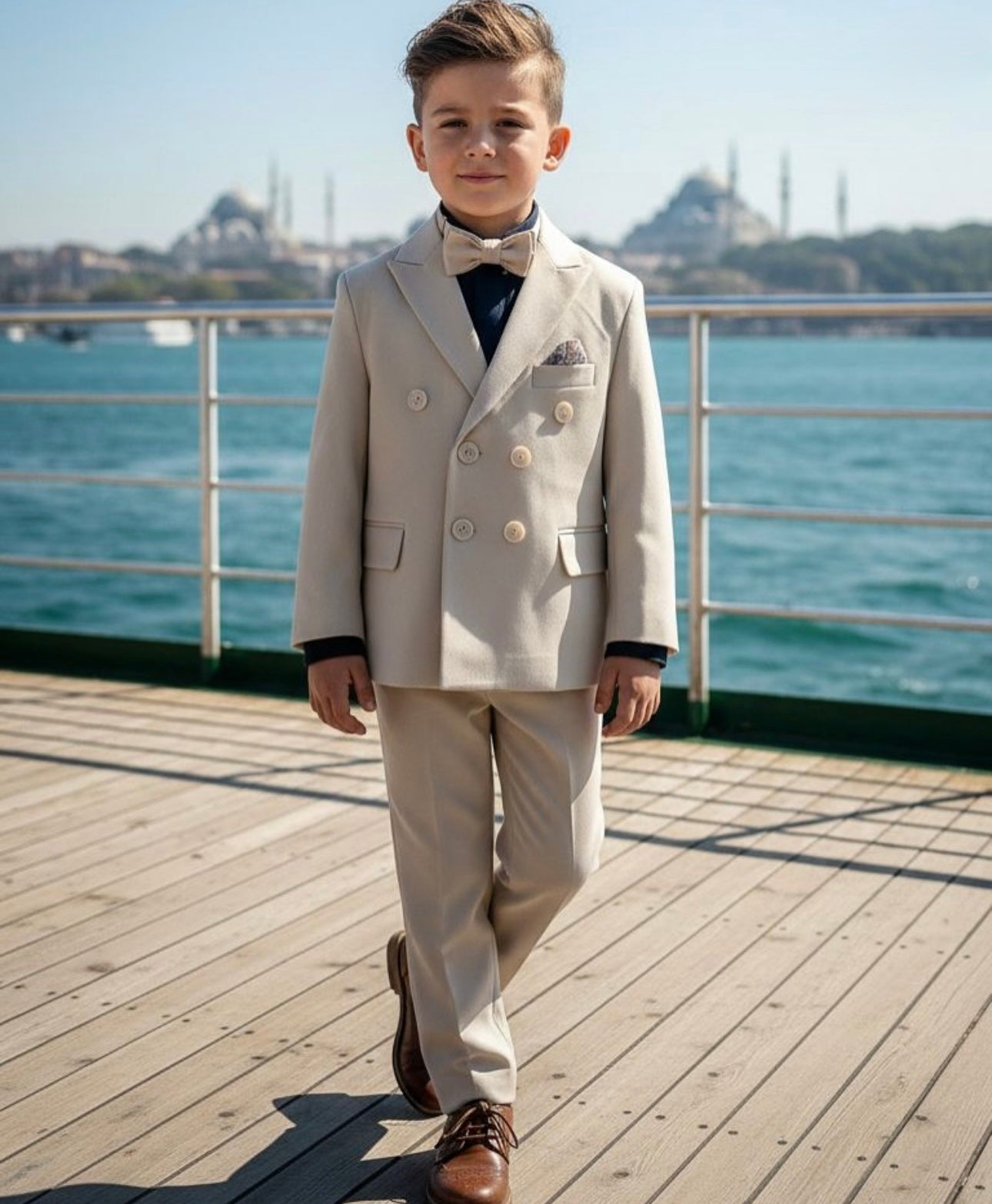 Dress your little gentleman in timeless sophistication with our Premium 5-Piece Suit Set, thoughtfully designed for style, comfort, and confidence. This complete ensemble includes a crisp shirt, tailored waistcoat, smart trousers, structured blazer, and a coordinating bow tie. Crafted from high-quality, breathable fabrics, the suit offers a comfortable fit and a polished finish.