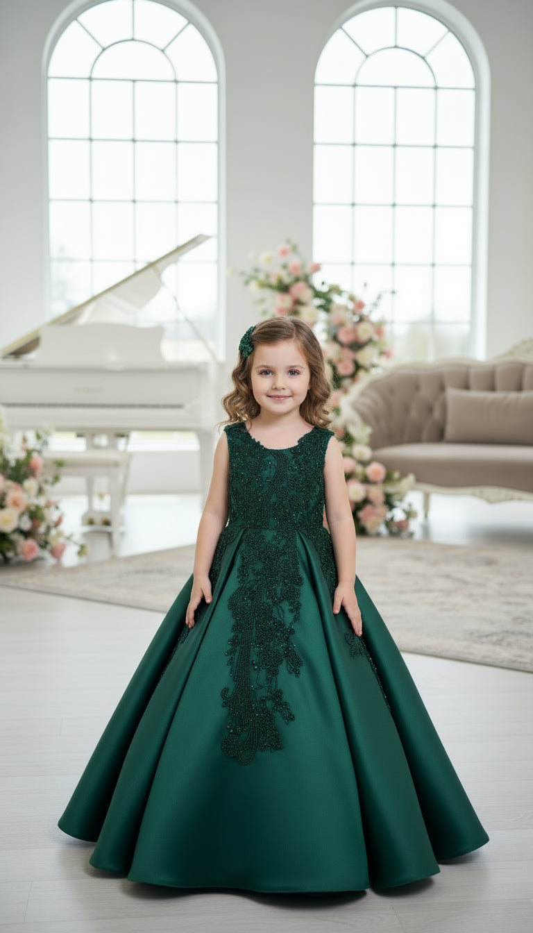 This stunning gown is crafted from luxurious, high-quality satin for a smooth, elegant finish that shines with every step. Designed with an inner hoop skirt (ring) to create a beautifully full, puffed-out silhouette, it offers a classic princess look with modern grace.