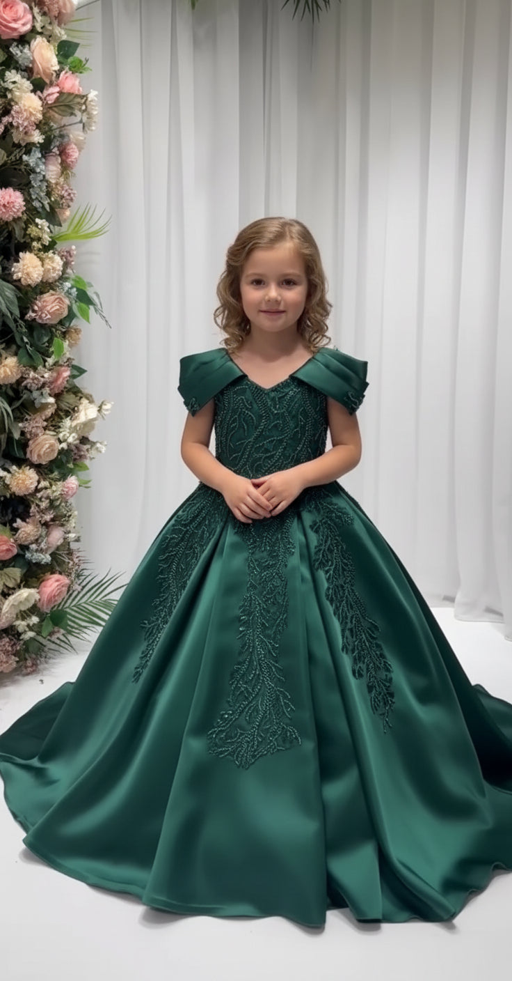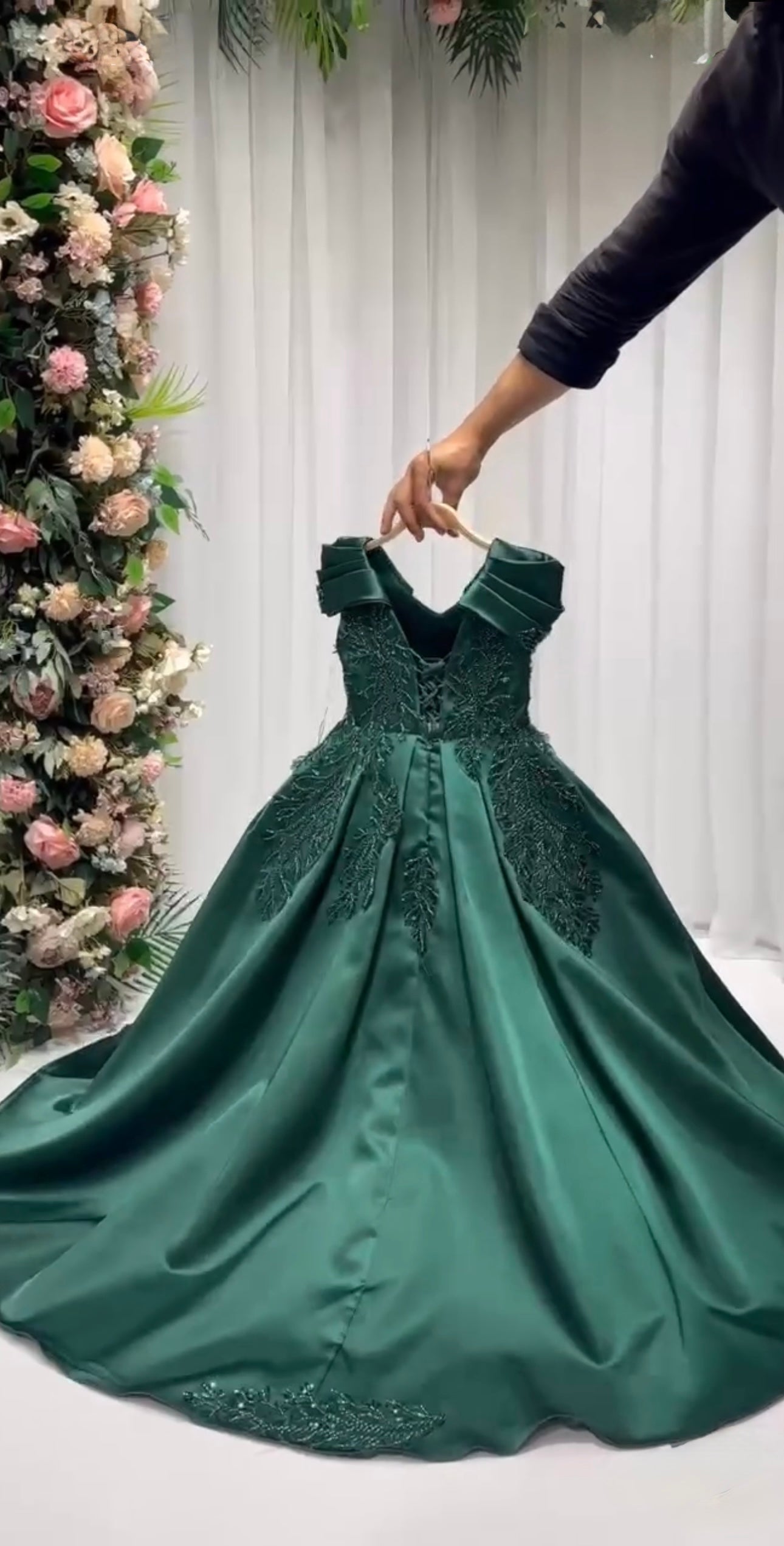 This stunning gown is crafted from luxurious, high-quality satin for a smooth, elegant finish that shines with every step. Designed with an inner hoop skirt (ring) to create a beautifully full, puffed-out silhouette, it offers a classic princess look with modern grace.