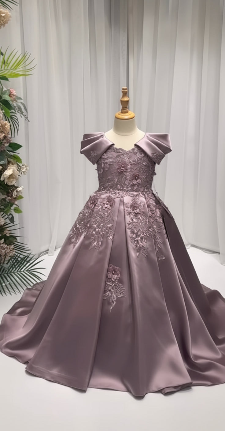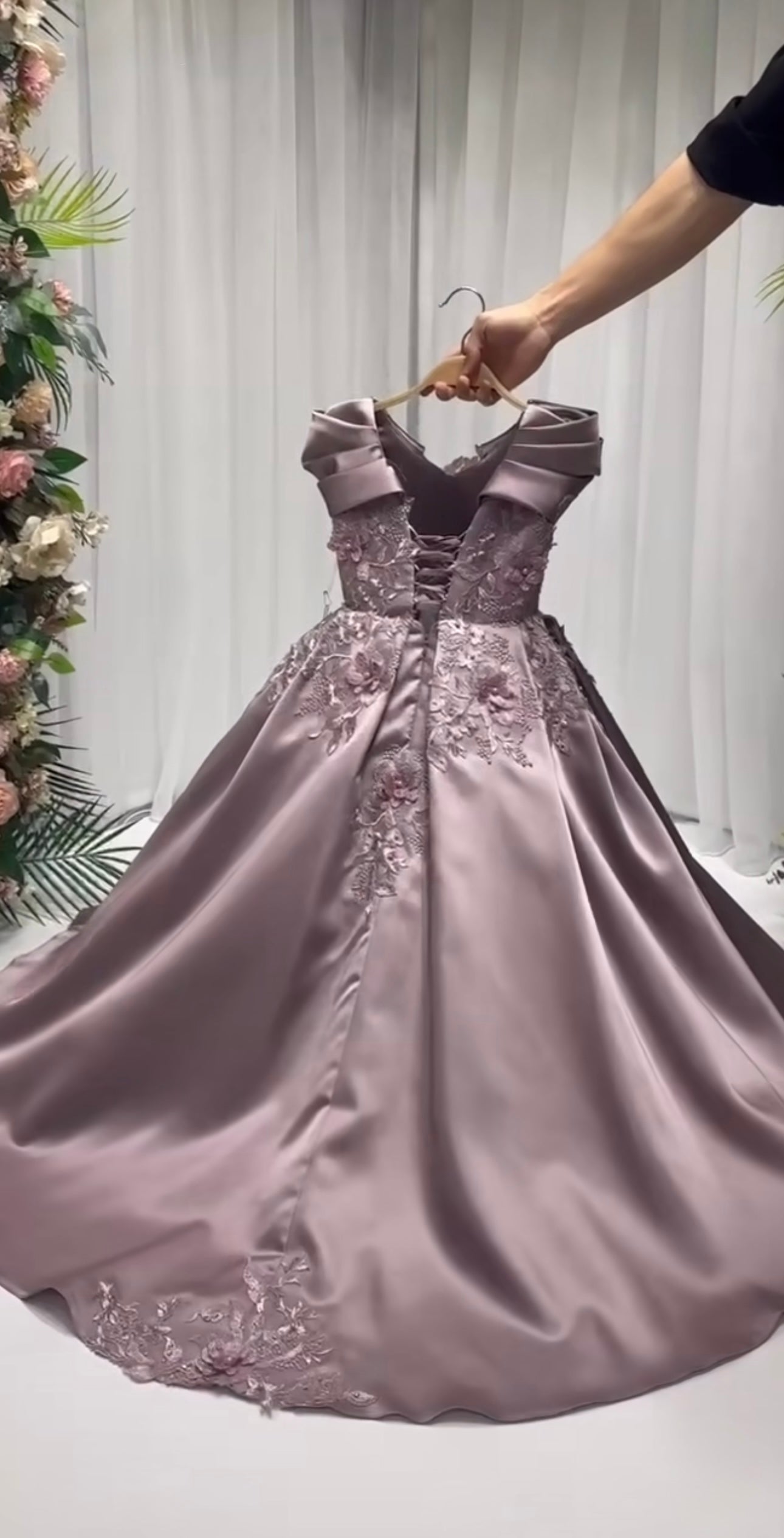 This stunning gown is crafted from luxurious, high-quality satin for a smooth, elegant finish that shines with every step. Designed with an inner hoop skirt (ring) to create a beautifully full, puffed-out silhouette, it offers a classic princess look with modern grace.