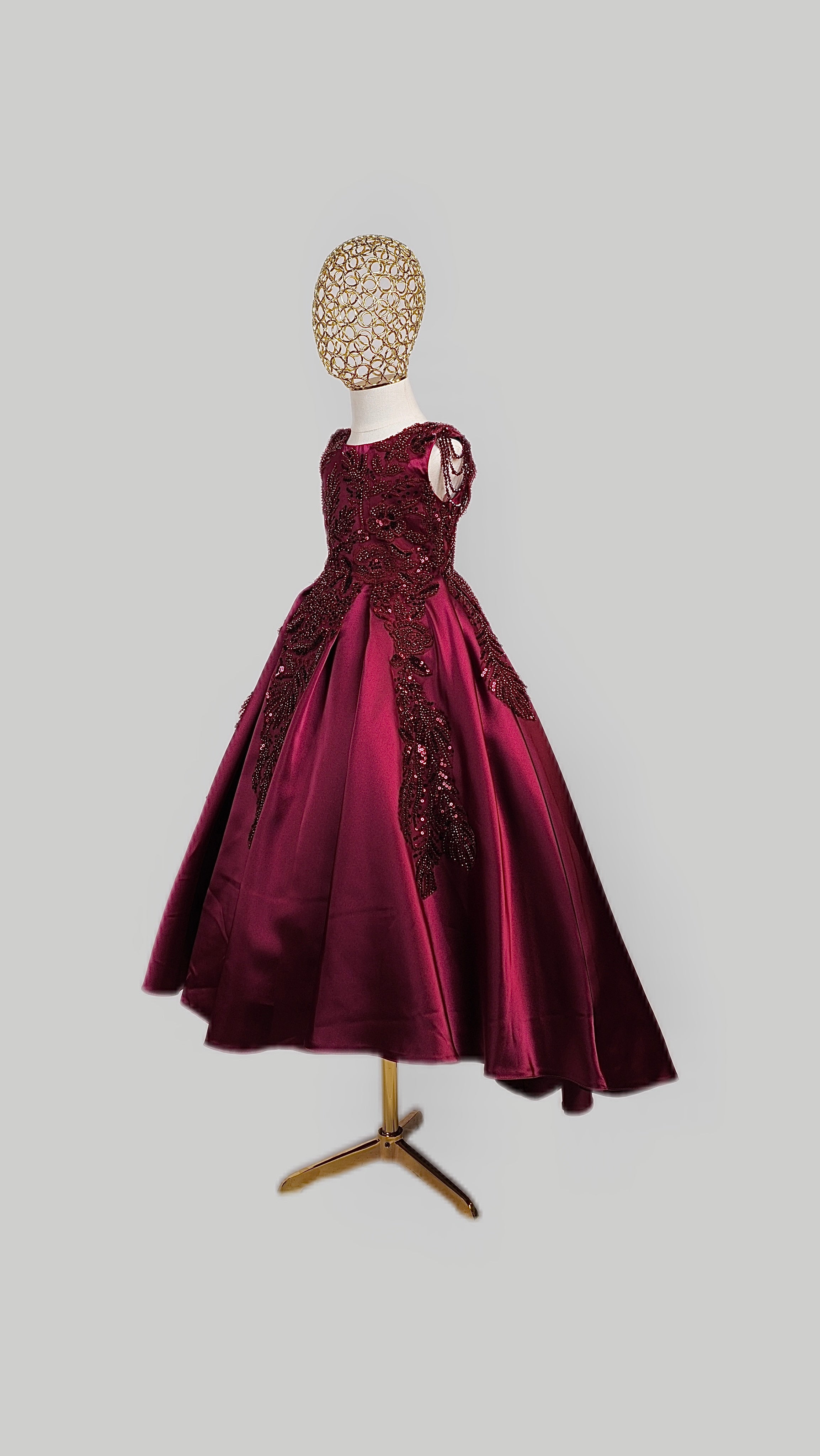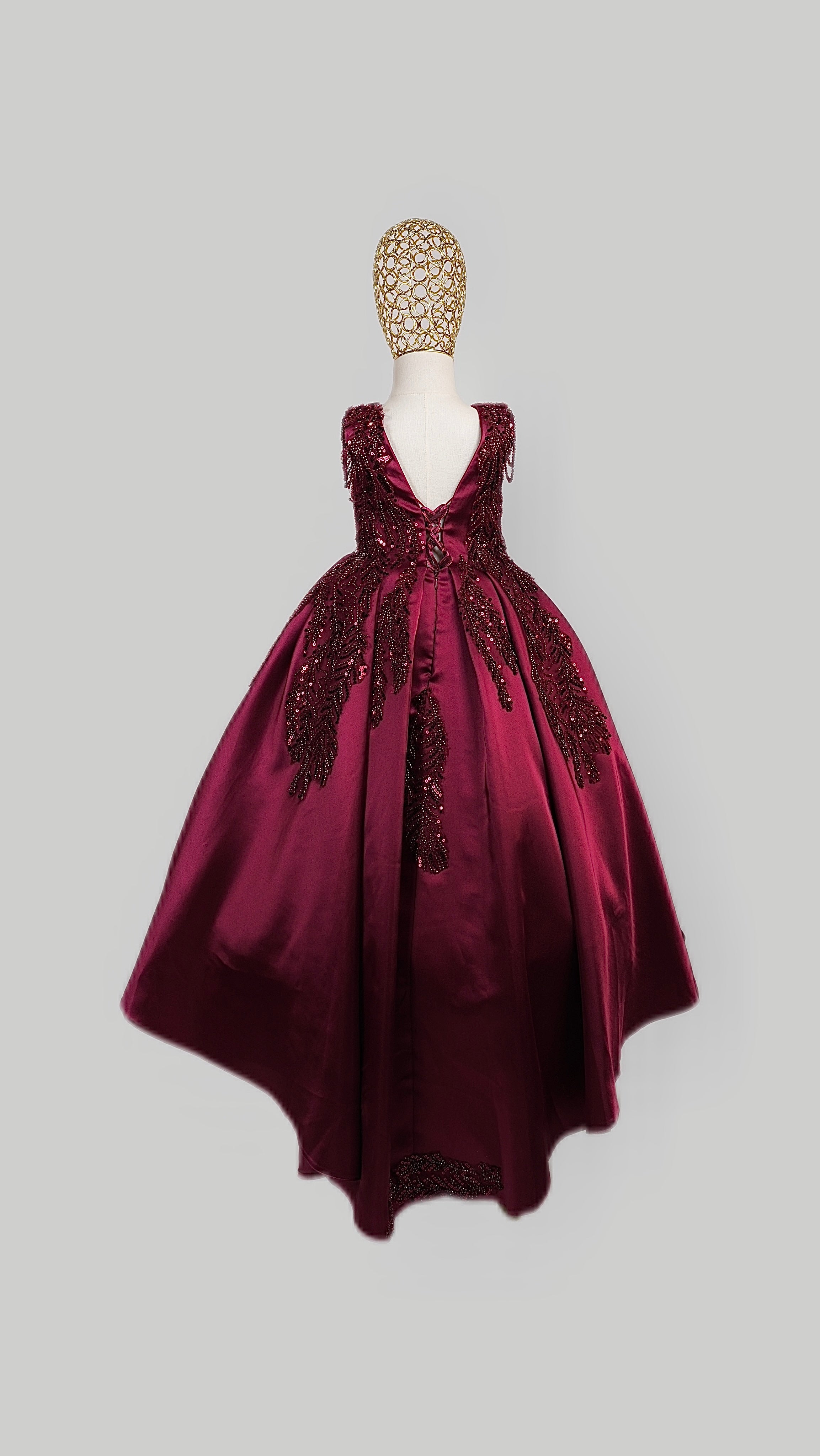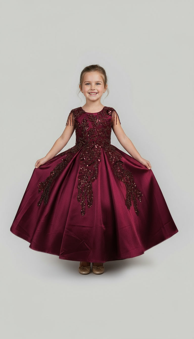 This stunning gown is crafted from luxurious, high-quality satin for a smooth, elegant finish that shines with every step. Designed with an inner hoop skirt (ring) to create a beautifully full, puffed-out silhouette, it offers a classic princess look with modern grace.