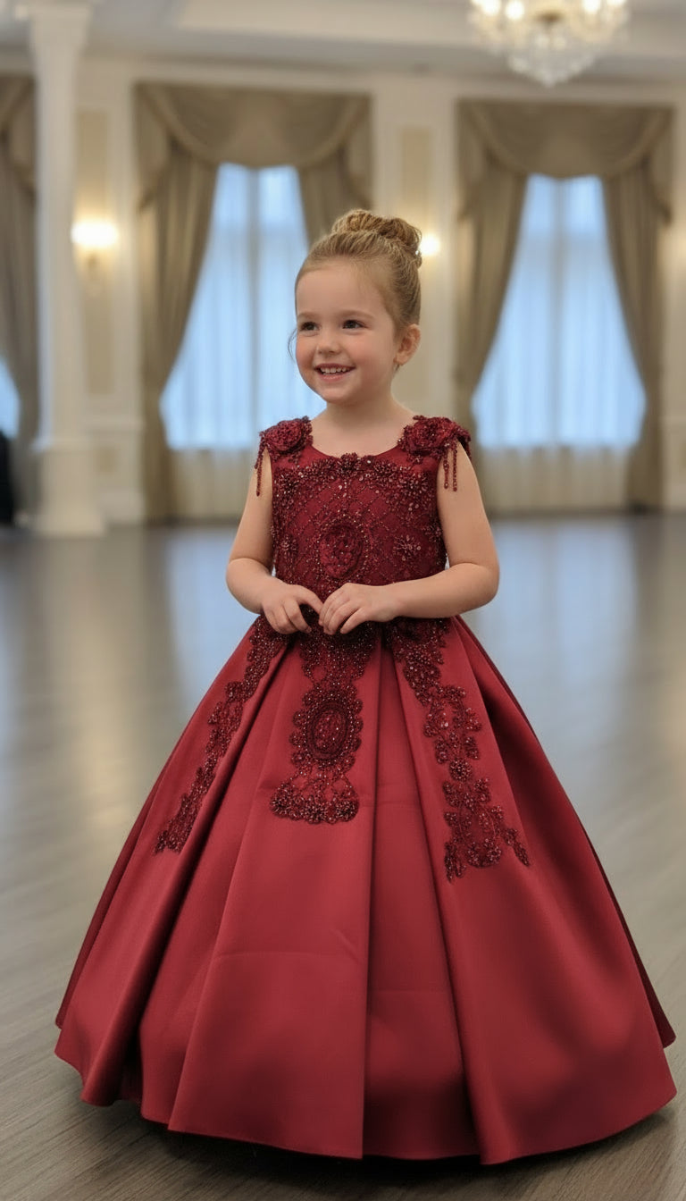 This stunning gown is crafted from luxurious, high-quality satin for a smooth, elegant finish that shines with every step. Designed with an inner hoop skirt (ring) to create a beautifully full, puffed-out silhouette, it offers a classic princess look with modern grace.