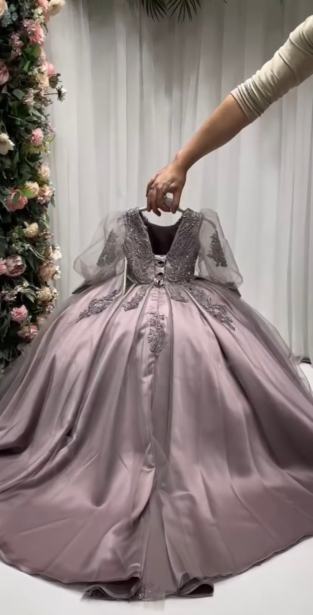 This stunning gown is crafted from luxurious, high-quality satin for a smooth, elegant finish that shines with every step. Designed with an inner hoop skirt (ring) to create a beautifully full, puffed-out silhouette, it offers a classic princess look with modern grace.