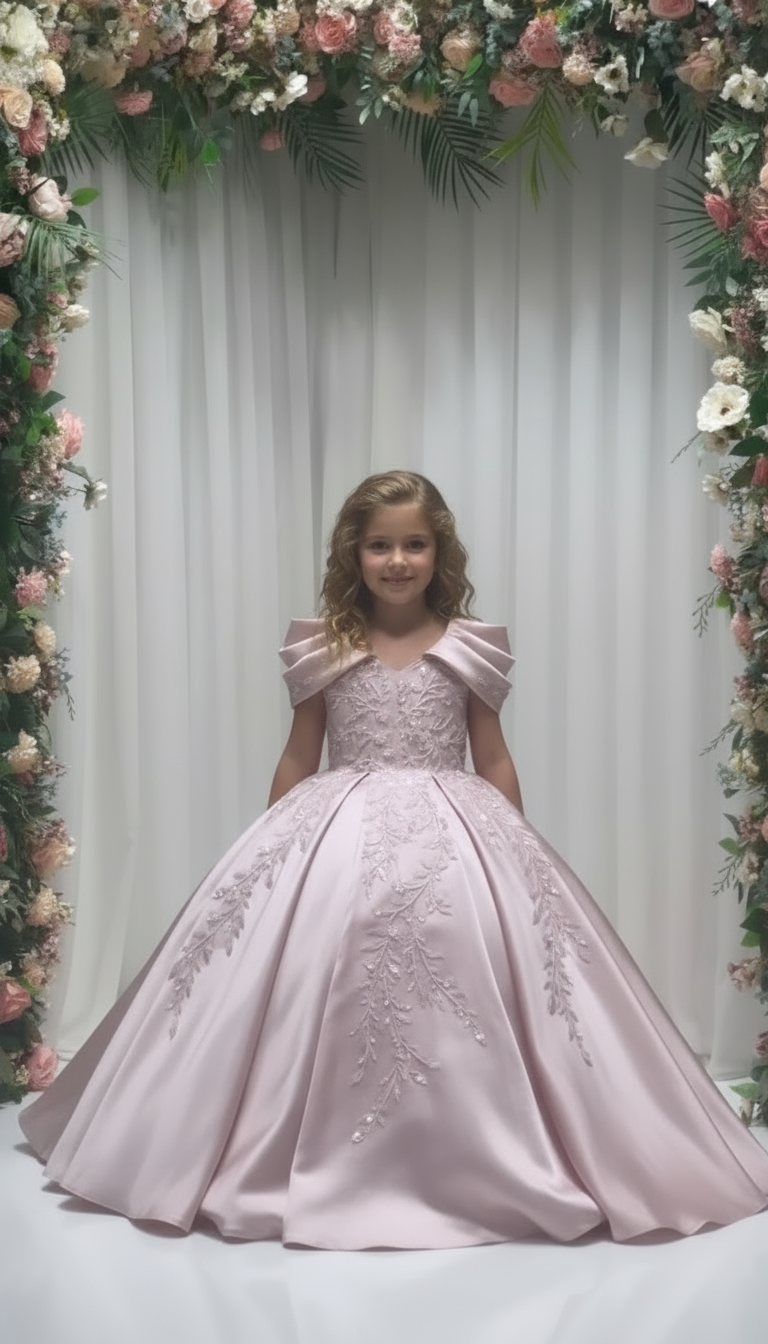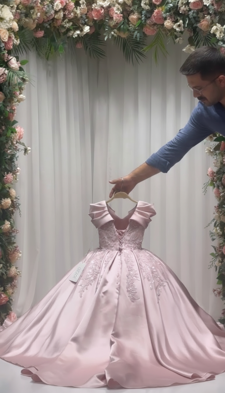 This stunning gown is crafted from luxurious, high-quality satin for a smooth, elegant finish that shines with every step. Designed with an inner hoop skirt (ring) to create a beautifully full, puffed-out silhouette, it offers a classic princess look with modern grace.