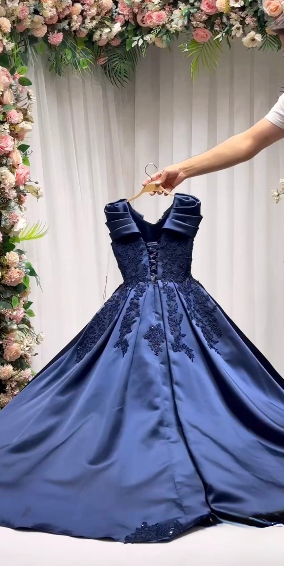 This stunning gown is crafted from luxurious, high-quality satin for a smooth, elegant finish that shines with every step. Designed with an inner hoop skirt (ring) to create a beautifully full, puffed-out silhouette, it offers a classic princess look with modern grace.