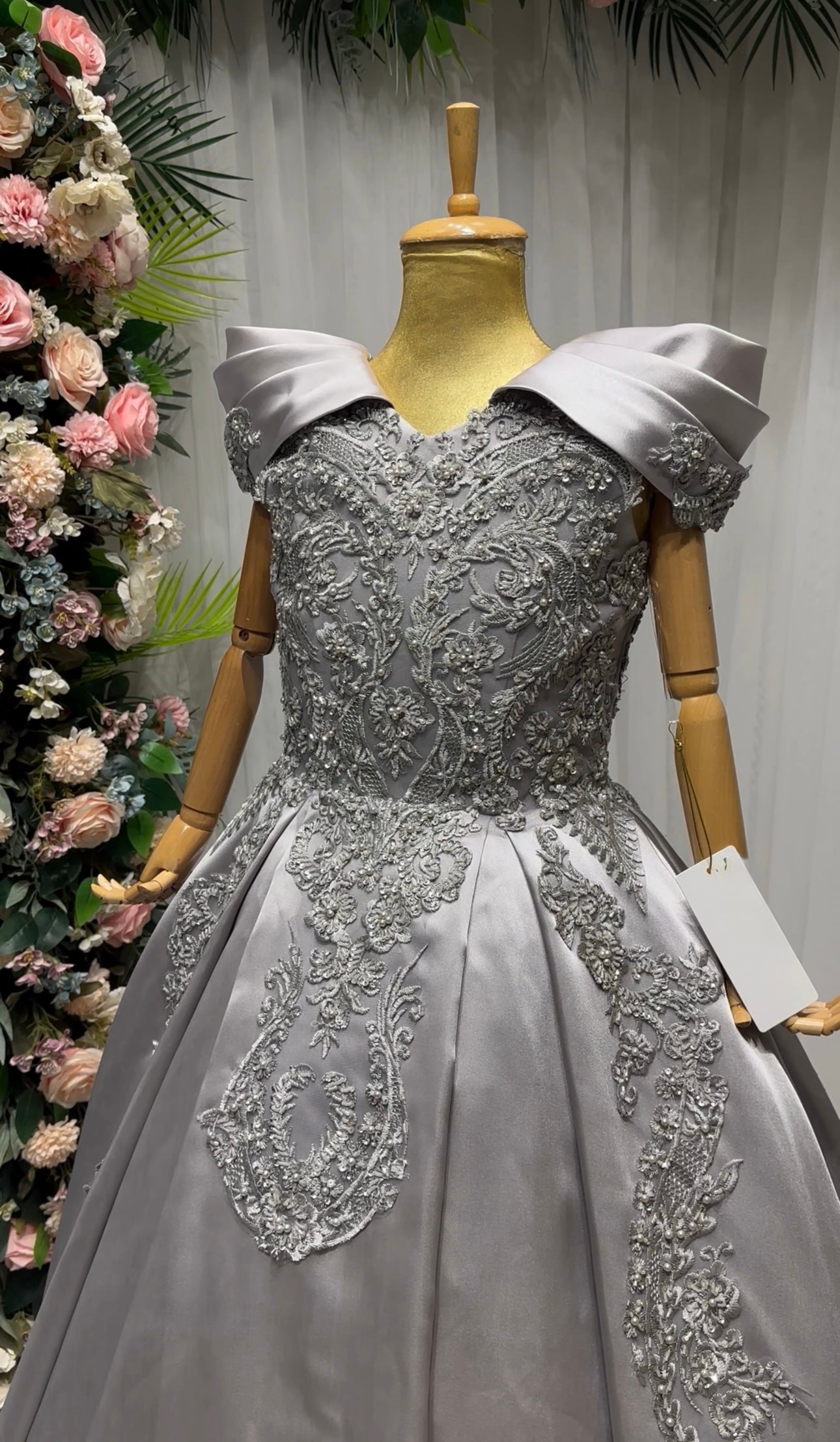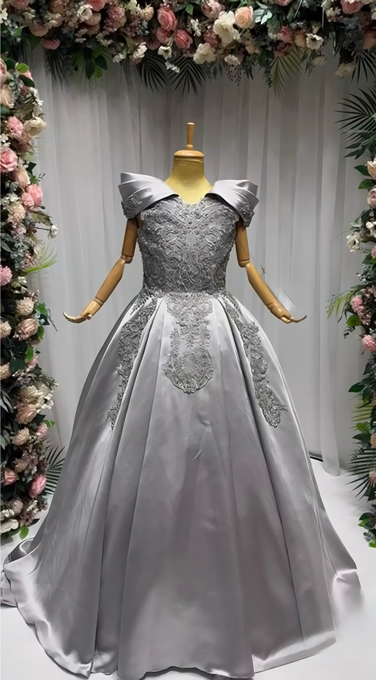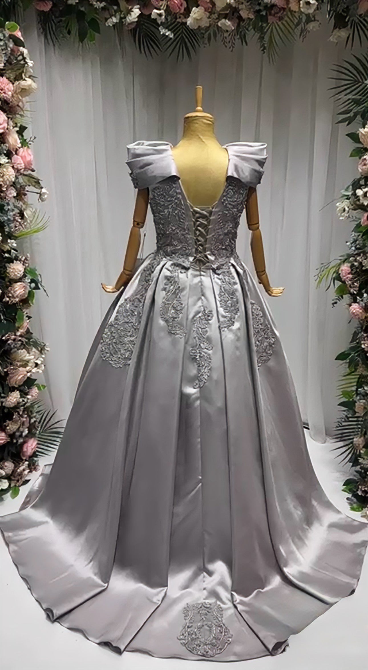 This stunning gown is crafted from luxurious, high-quality satin for a smooth, elegant finish that shines with every step. Designed with an inner hoop skirt (ring) to create a beautifully full, puffed-out silhouette, it offers a classic princess look with modern grace.